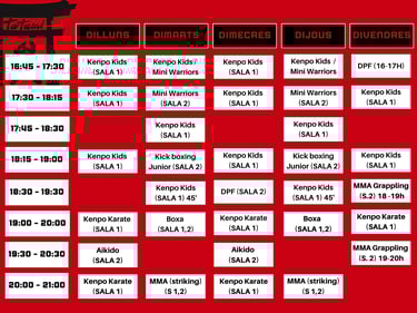 El Kenpo Modern és un sistema d’autodefensa creat als EUA pel Mestre Ed Parker. Es basa en moviments ràpids, fluïds i lògics, combinant cops, bloquejos i tècniques circulars per neutralitzar amenaces de manera efectiva. Treballem la disciplina, el control emocional i la confiança.